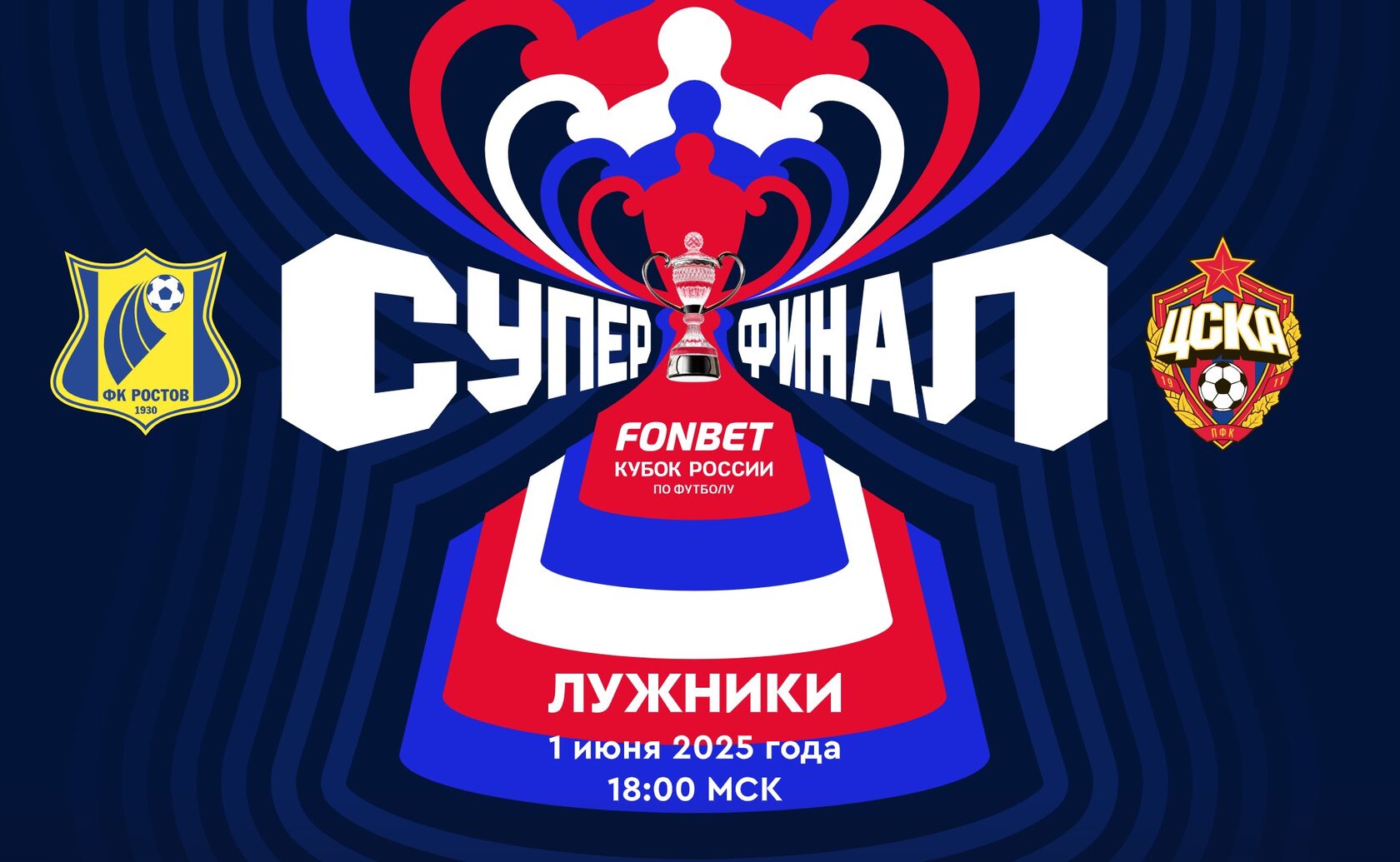 🏆 Главный матч сезона состоится 1 июня 2025 года на легендарном стадионе «Лужники»! Две сильнейшие команды страны выйдут на поле, чтобы определить обладателя Кубка России по футболу. Это кульминация турнира, которая подарит болельщикам море эмоций, невероятную борьбу и захватывающее шоу!